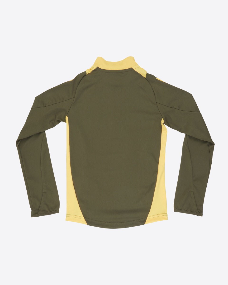 Fielding cuff thumbholes that let you pull its long sleeves over your hands, this olive training top has you covered when the temperature drops. Moisture-managing AEROREADY and a quarter zip work together to keep you comfortable. Complete with a printed club crest and grey mesh side panels.