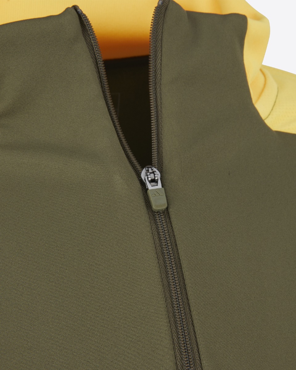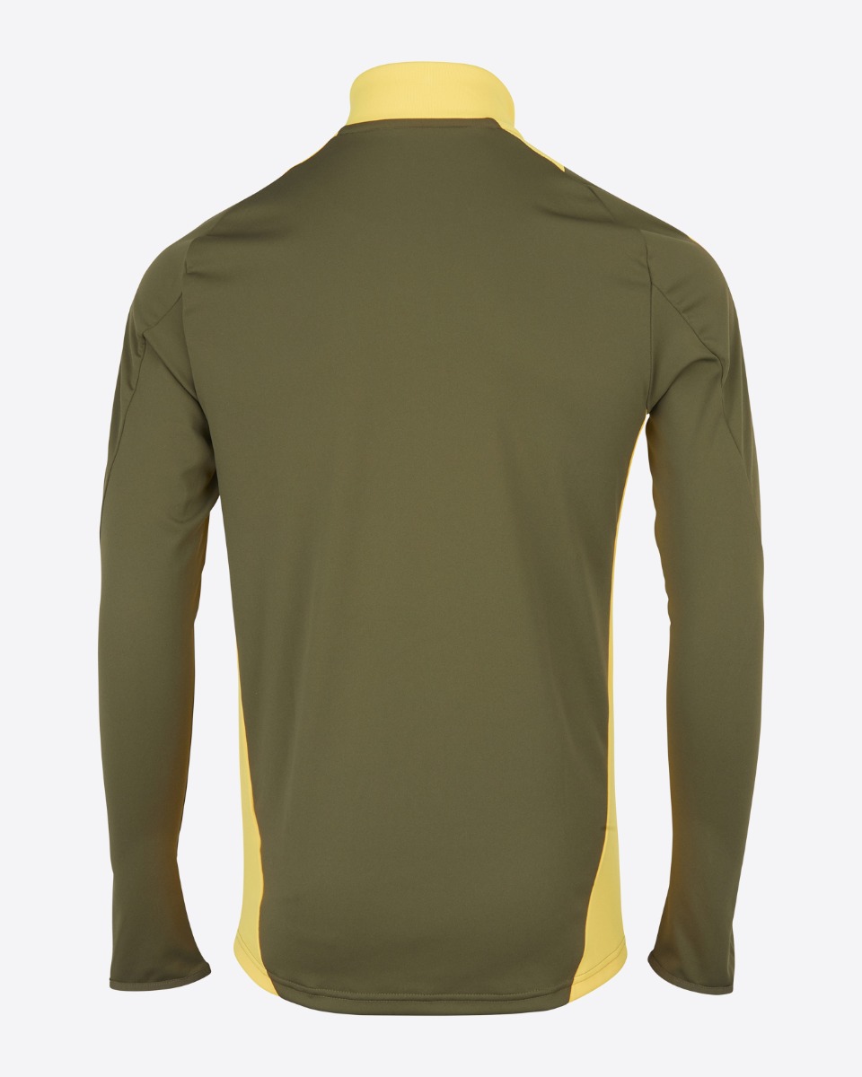 Fielding cuff thumbholes that let you pull its long sleeves over your hands, this olive training top has you covered when the temperature drops. Moisture-managing AEROREADY and a quarter zip work together to keep you comfortable. Complete with a printed club crest and grey mesh side panels.