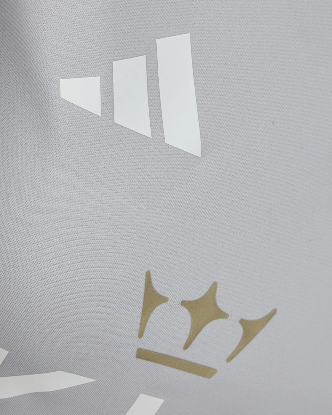 Ready for any challenge during training, our grey training jersey will keep you comfortable during intensive drills thanks to its smooth interlock fabric and moisture-managing AEROREADY. Featuring white 3-stripe and logo detailing - complete with contrasting mesh inserts for ventilation and a ribbed crewneck.