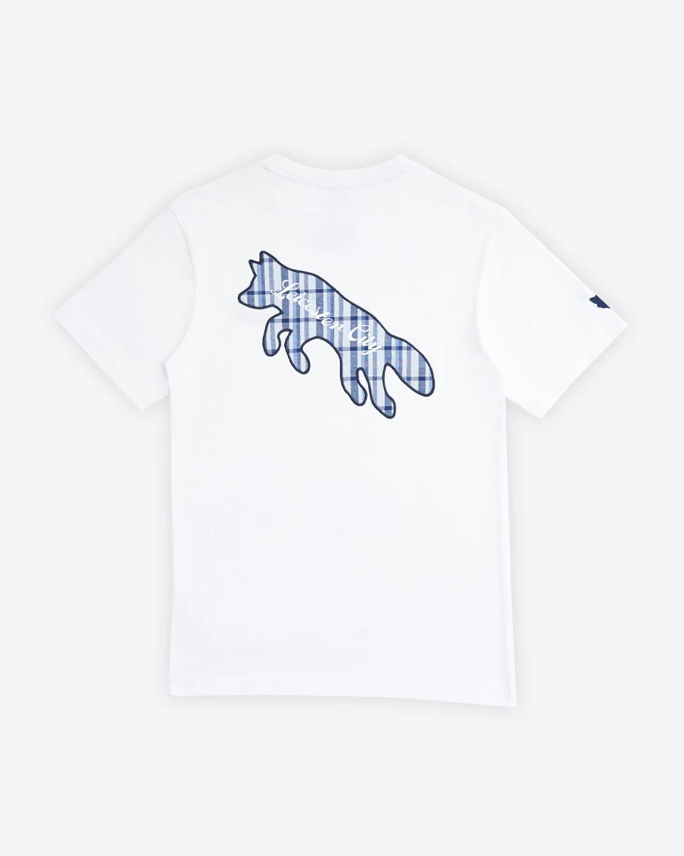 The front left of the chest is embroidered with “LCFC Leicester City Football Club” in navy blue. The neckline is decorated with hand-woven loincloth in a check pattern hem. The right arm is embroidered with a navy-blue fox face and the back is embroidered with 9-strand loincloth. The cotton – hand-woven exquisitely with such complex steps by Khao Tao Handicraft Center in Prachuap Khiri Khan Province that they can weave only 1 piece per day – is cut into a jumping fox design with the words “Leicester City” printed on it. The jumping fox represents Leicester City and the leap made by Khao Tao in changing from a fishing village into a handicraft village. A perfect combination of modern art and cultural heritage.