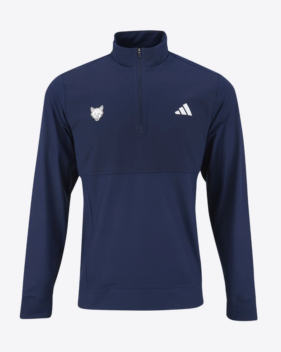 This adidas, navy 1/4 zip provides a comfortable layer during chilly rounds, and a water-repellent finish fends off occasional light showers as you play through. Built-in stretch maintains distraction-free movement.