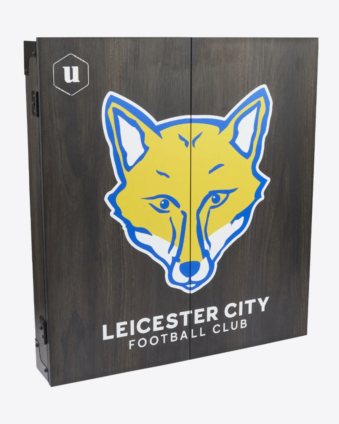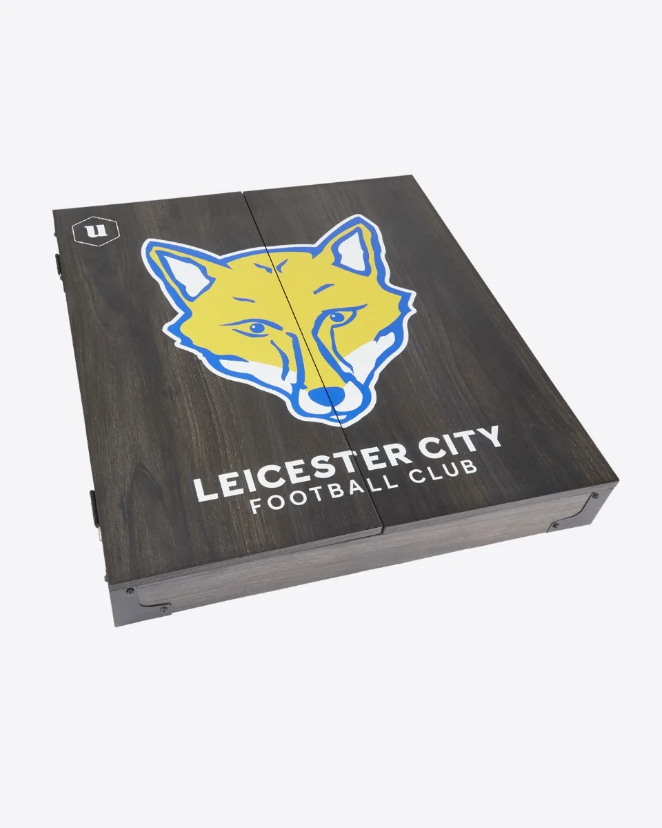 The perfect addition to any darts pad - our wooden Leicester City Dartboard Cabinet features a printed foxhead front and centre. Complete with wipe dry score boards.
