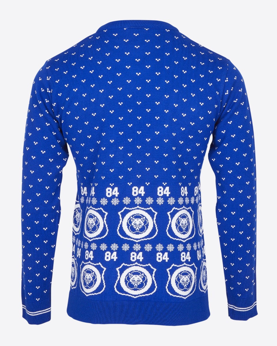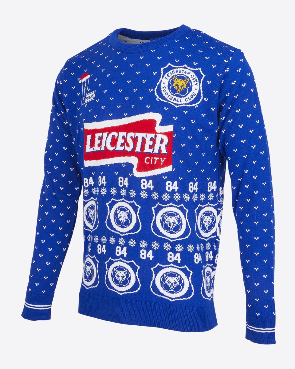 Featuring a large retro Leicester City graphic front and center, along with repeated 1996/98 year markers and vintage club crests throughout, this jumper captures the spirit of LCFC history with a fun holiday twist. Snowflakes and festive patterns complete the look for a perfect blend of football and festivity.
