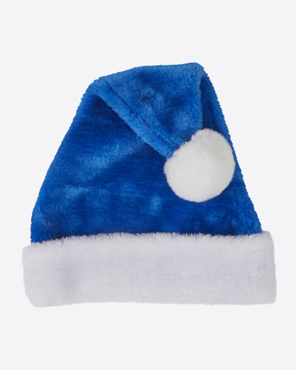 This bright blue Santa hat features a fluffy white trim with embroidered snowflakes and the iconic LCFC crest at the center. Topped with a fun snowball-style pom-pom.