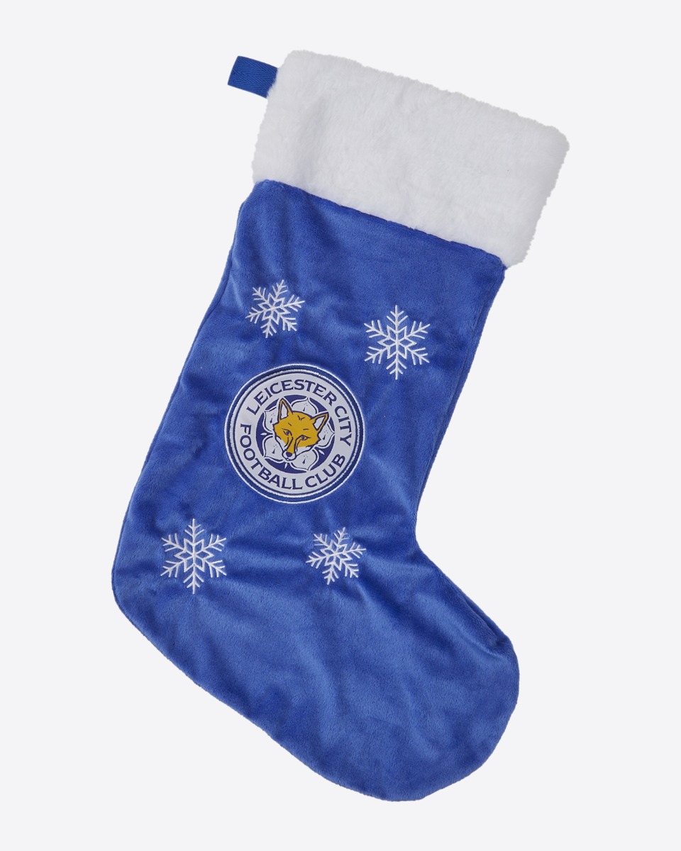 This stocking features snowflake embroidery and the iconic club crest front and center. The fluffy white cuff and handy hanging loop make it perfect for the fireplace, bedpost, or anywhere Santa might stop by.