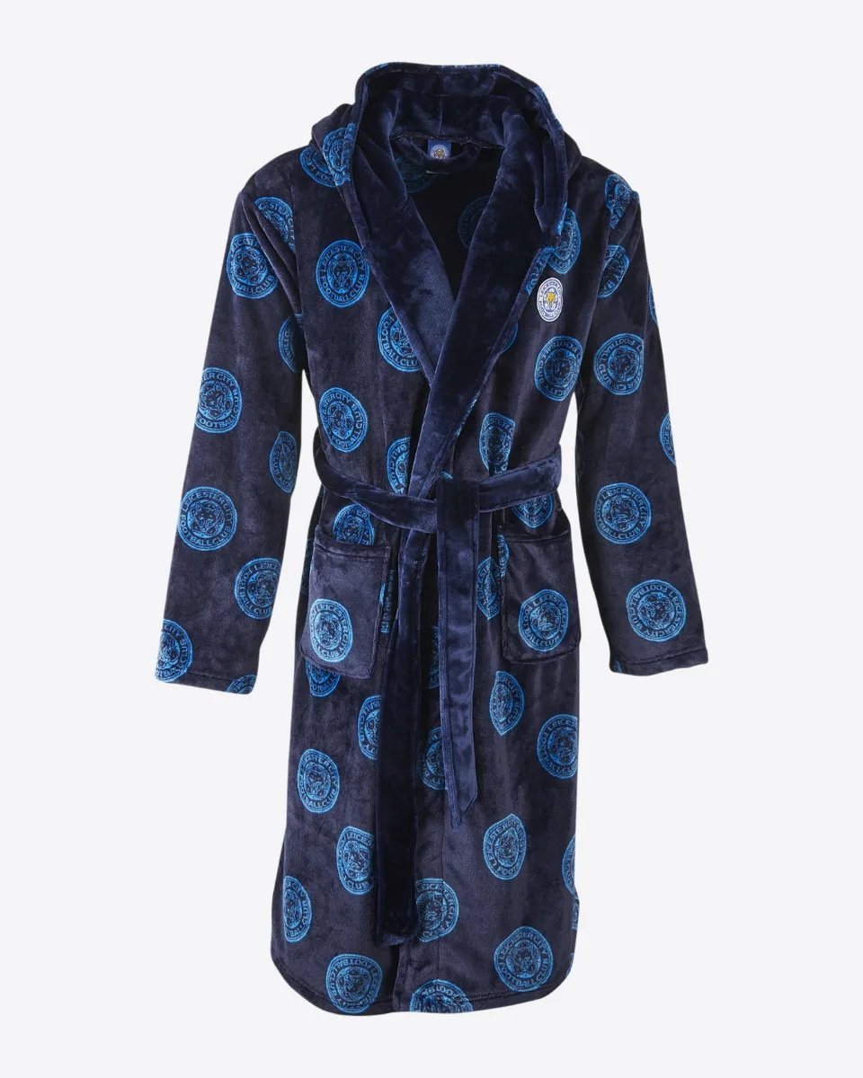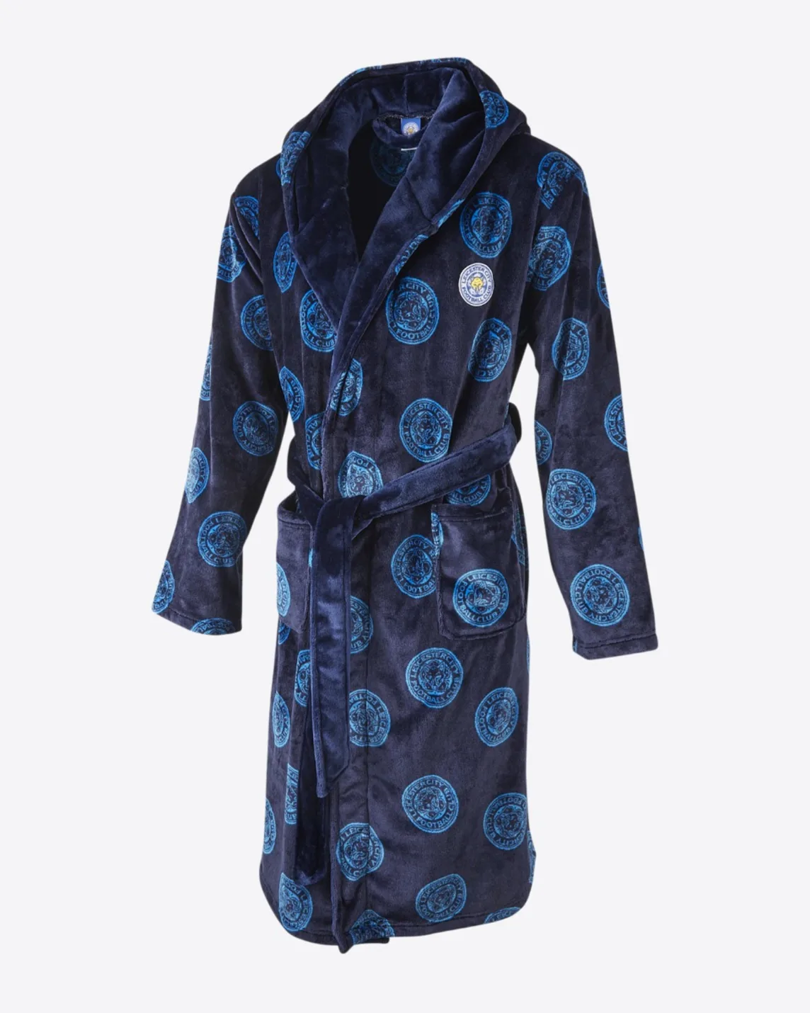 Featuring a contrasting repeat crest design, our navy Leicester City print dressing gown will keep you cosy during those colder nights. Complete with pockets.