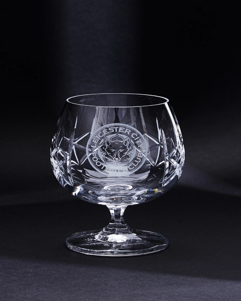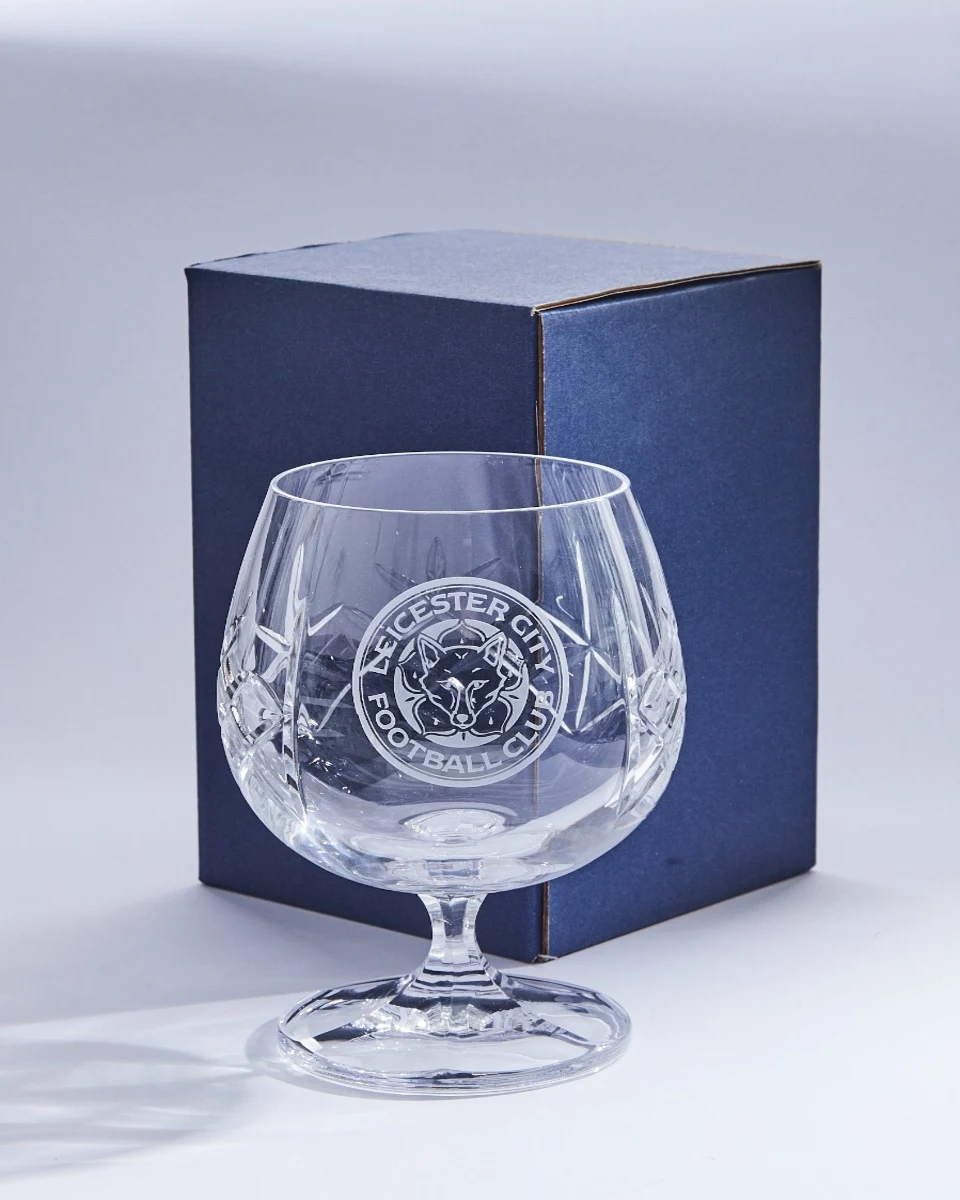 The Leicester City Crystal Brandy Glass features the club crest and cut glass detailing, creating a sophisticated look, ideal for any occasion.