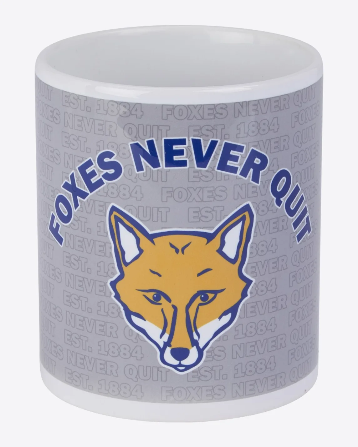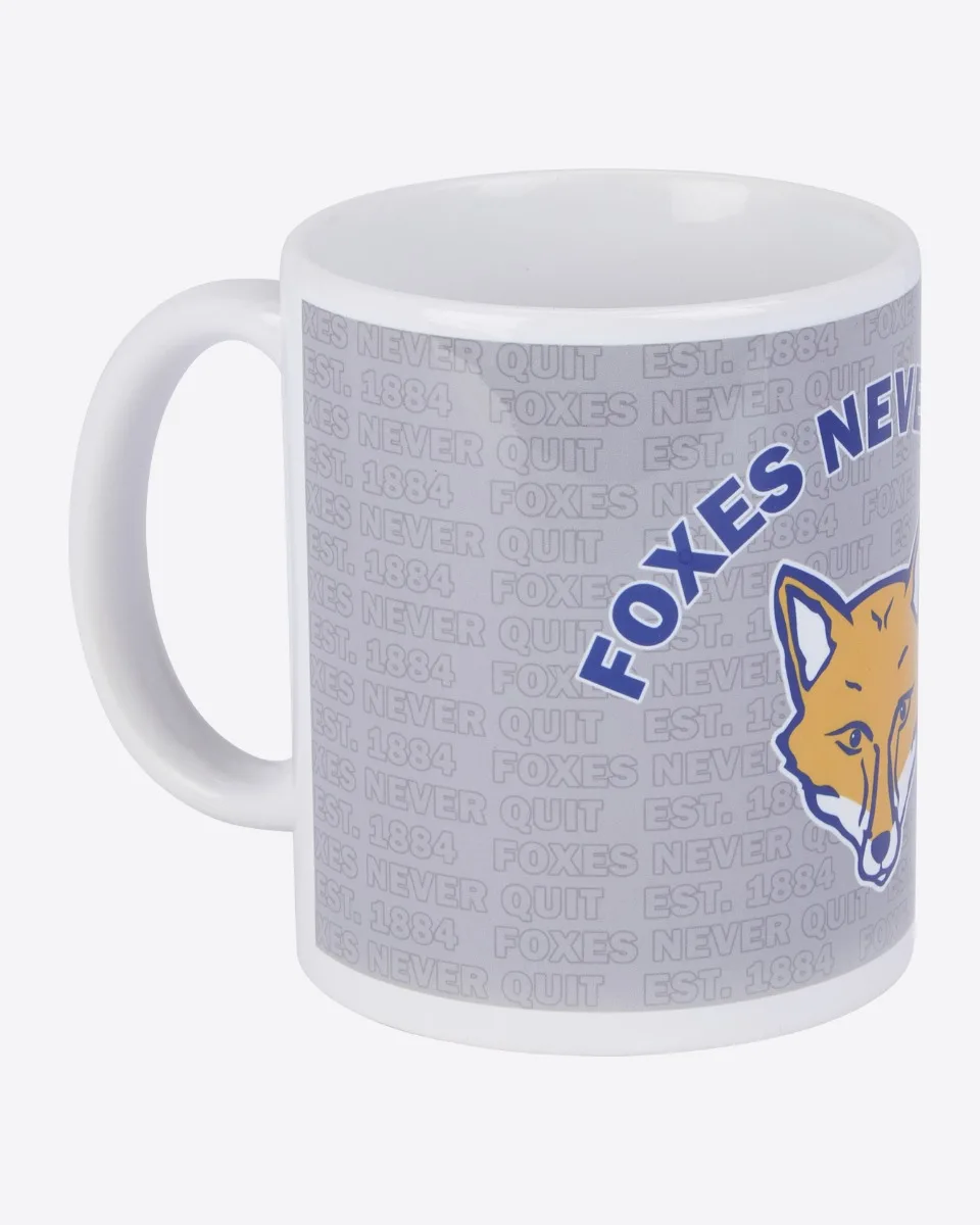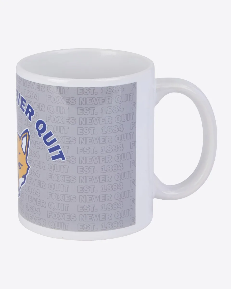 Enjoy a morning brew or a tea break at work with our grey and white, Foxes never quit mug - show the office who you are proud to support.