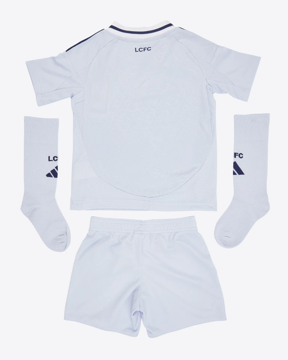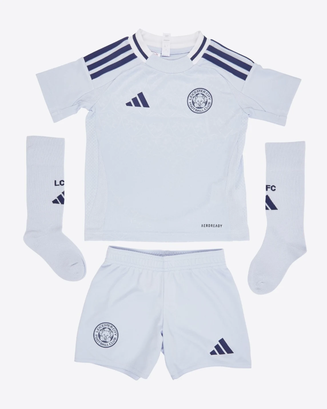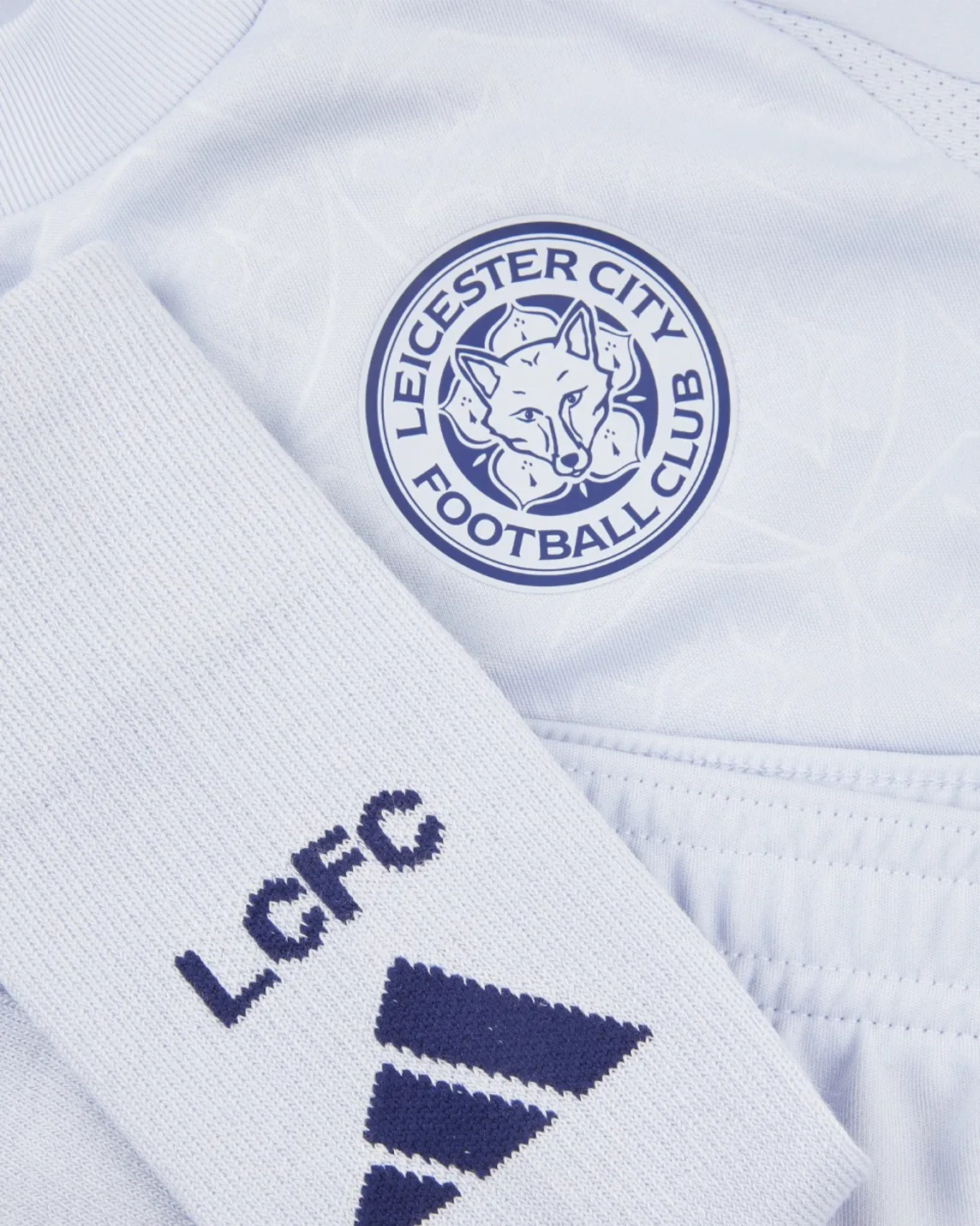 Our 2024/25 Leicester City adidas Third Mini Kit evokes thoughts of what could have been, but also serves as inspiration of what can be. An ice-inspired aero blue fabric is debossed with a repeat shield crest, the same adorned by the Ice Kings during that famous season. Complete with a tonal club crest, crew neck collar and dark blue piping rounding off a fresh-new look for our 2024/25 campaign.