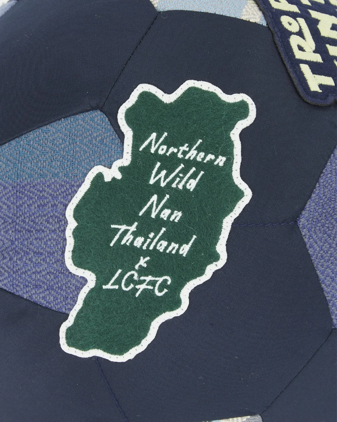 The Northern Wild, Northern Life navy blue football-shaped cushion reflects the unique character of local northern Thai culture. Showcasing the distinctive craftsmanship of the area, the cushion features takong and herringbone weaving patterns from the Chiang Rai village community in Nan Province, northern Thailand. It also includes various LCFC embroidery designs, along with a striking fox chasing a football, symbolizing the energy and drive for victory inspired by Leicester City. This cushion is the perfect addition to enhance your home decor or favorite corner with a touch of uniqueness.