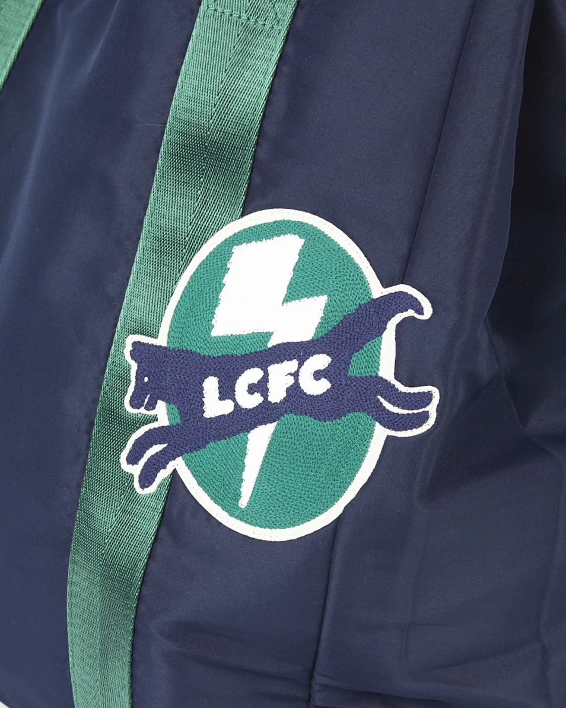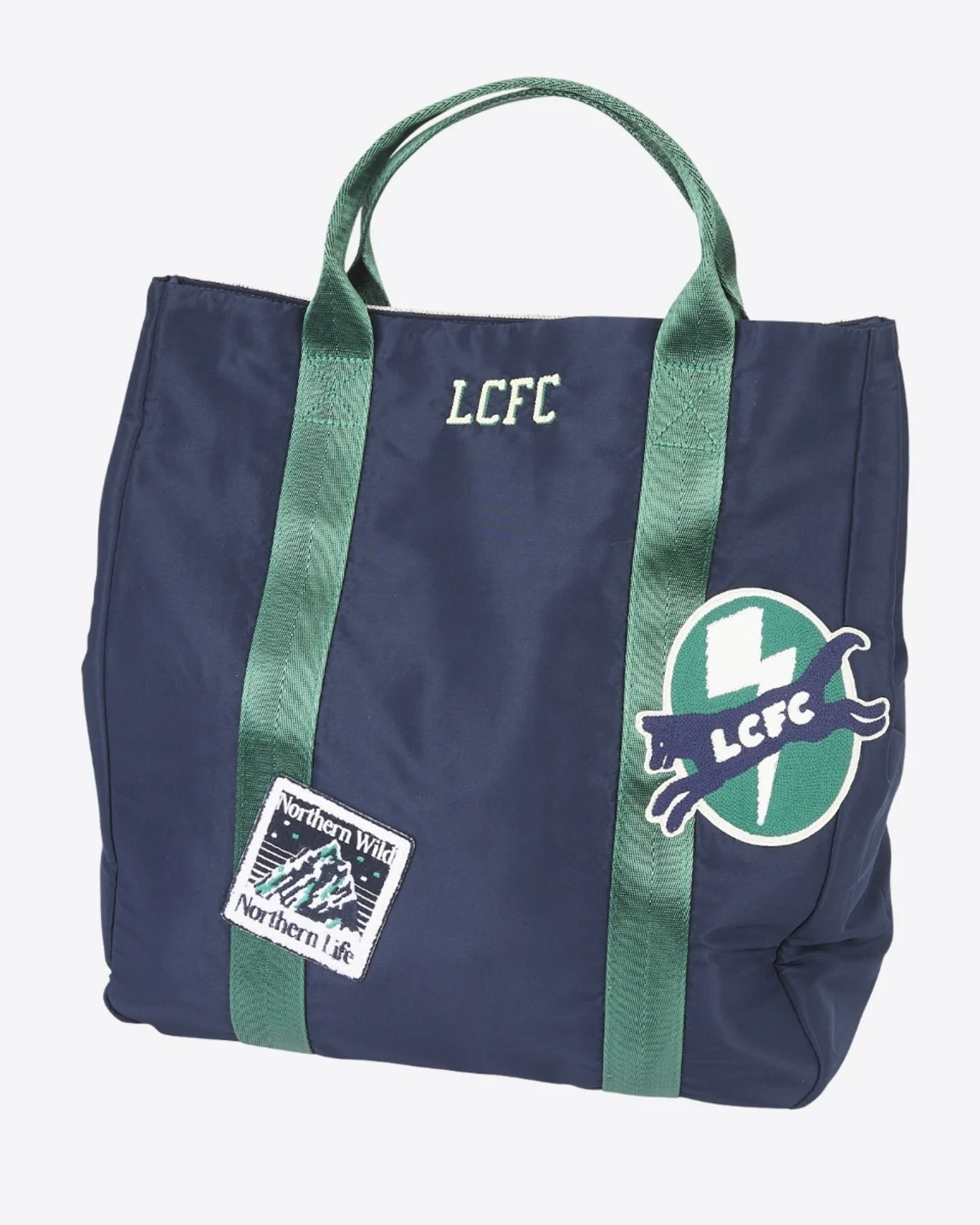 The Northern Wild, Northern Life navy blue tote bag features a beautiful design that's both stylish and easy to carry, with a spacious interior that can hold plenty of items. Made from high-quality fabric, it includes detailed accents of takong and herringbone weaving patterns, a distinctive feature of the Chiang Rai village community in Nan Province, northern Thailand. The design reflects the simplicity and deep meaning of traditional local life, enhanced with natural mountain tones for a modern touch. It also showcases unique embroidery designed by LCFC, with graphic patterns from this collection including a striking fox chasing a football, symbolizing the team’s relentless pursuit of victory. This tote bag invites you to be part of the club’s journey towards success.