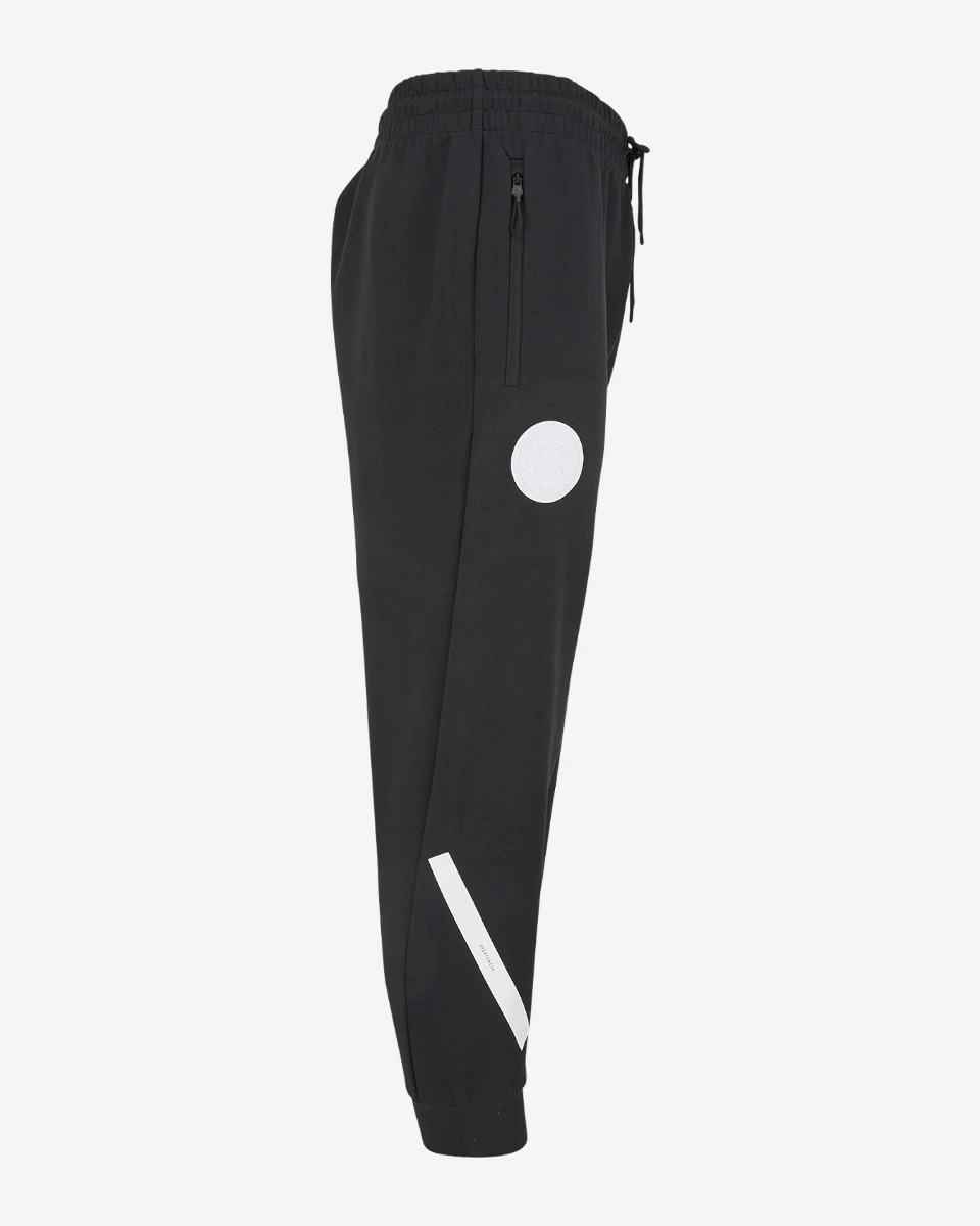Crafted from a premium, soft-touch blend of recycled polyester and elastane, they offer lightweight breathability with a streamlined, athletic fit. The minimalist black design of these ZNE travel pants features subtle Leicester City detailing, including a tonal club crest and the iconic Z.N.E. striping. An elasticated waistband with adjustable drawcord ensures a secure fit, while zippered side pockets keep essentials safe on the go.