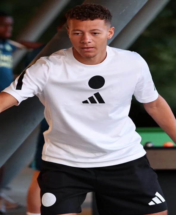 Crafted from a smooth cotton-blend fabric with moisture-wicking AEROREADY technology, it keeps you dry and comfortable during long journeys, warm-ups, or casual wear. The crisp white design is accented with minimalist detailing, including a subtle woven Leicester City crest and tonal adidas branding, creating a modern, travel-ready aesthetic.