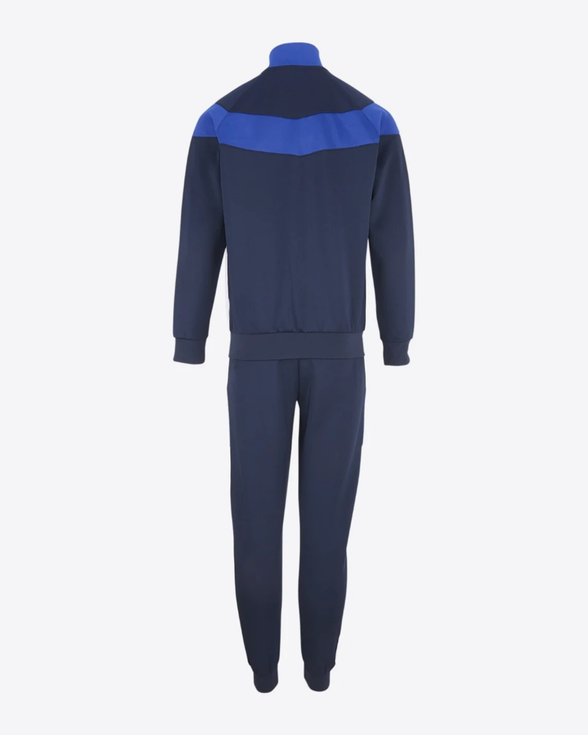 Our colour block tracksuit set is perfect for those comfy evenings during the colder months. The jacket features cuffed sleeves and hem and contrasting, white side panels. The bottoms are complete with an elasticated waist and drawcord, secure pockets and white and blue side panels on each leg. Complete with an embroidered, full colour club crest.