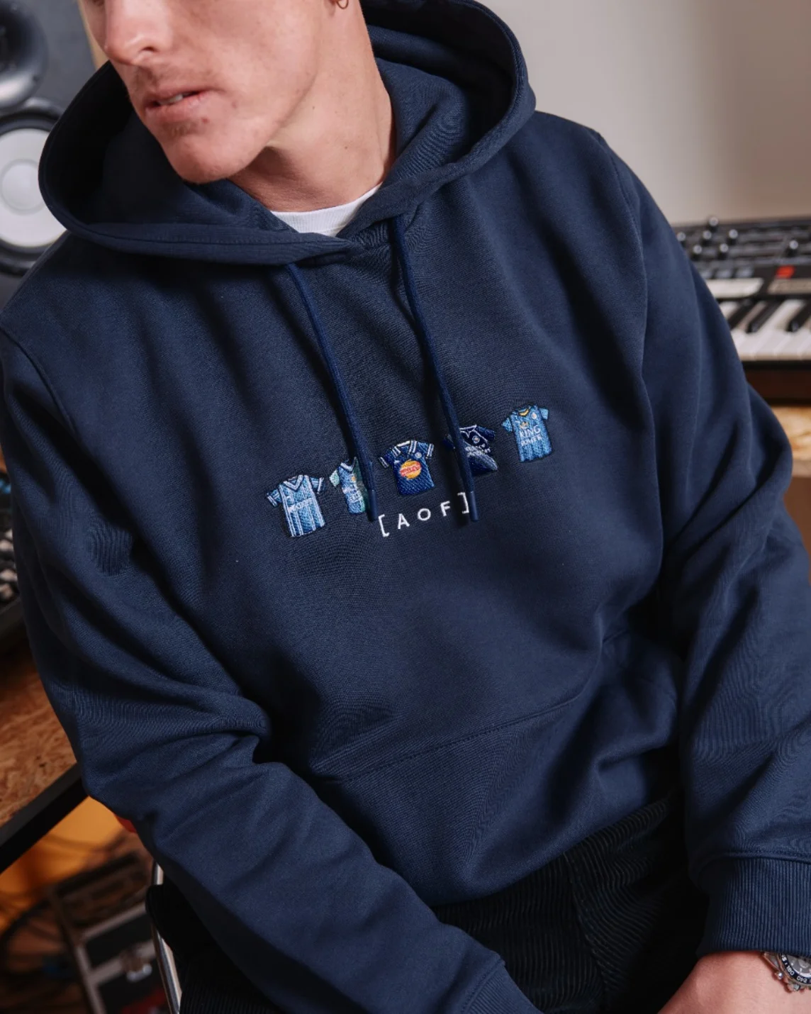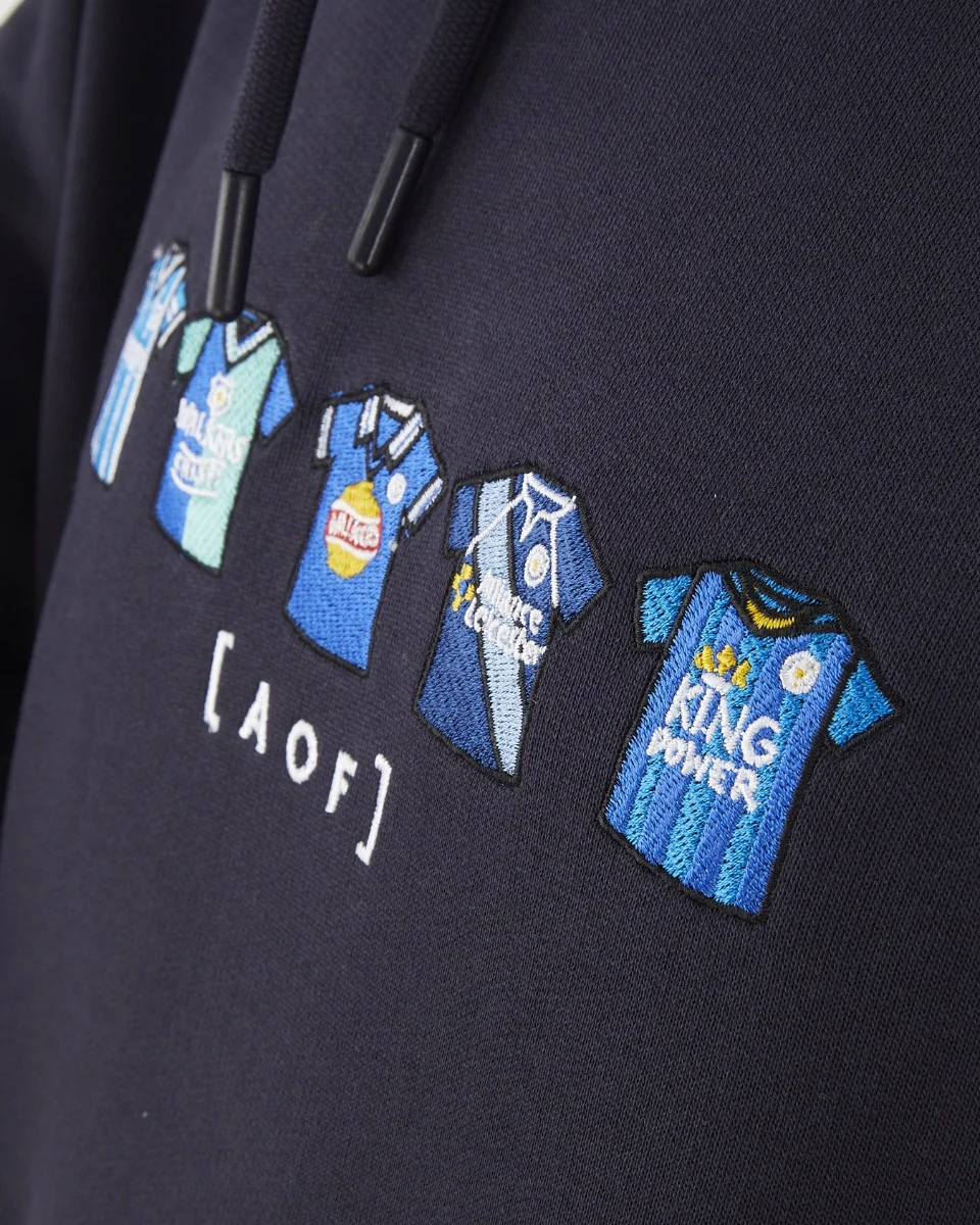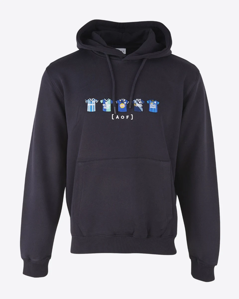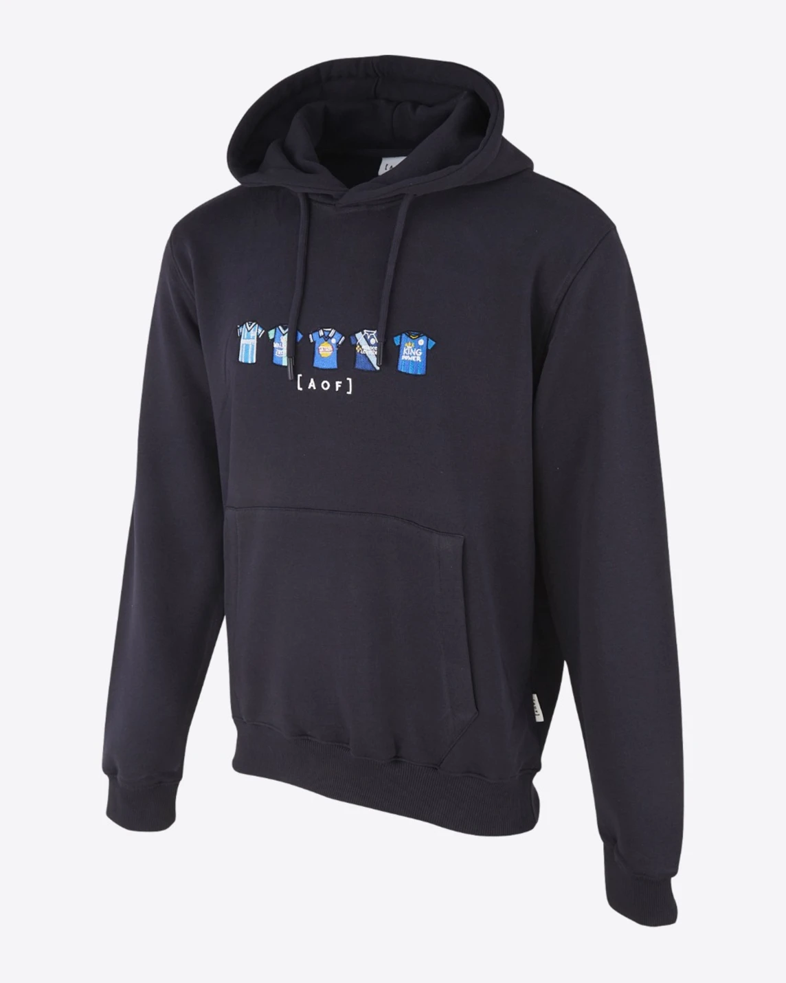 A classic hoody made from soft, organic cotton. A relaxed silhouette with double layered drawstring hood, kangaroo pouch pocket and ribbed trims Finished off with some classic Leicester City retro shirts, for added nostalgia.
