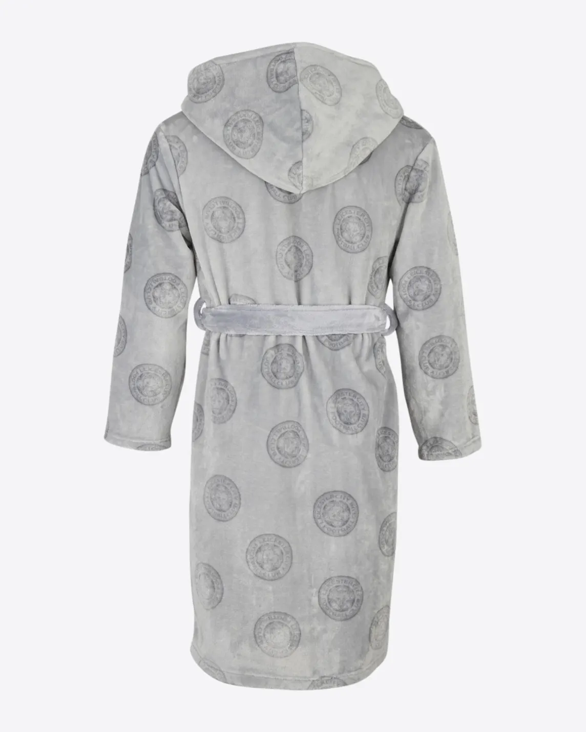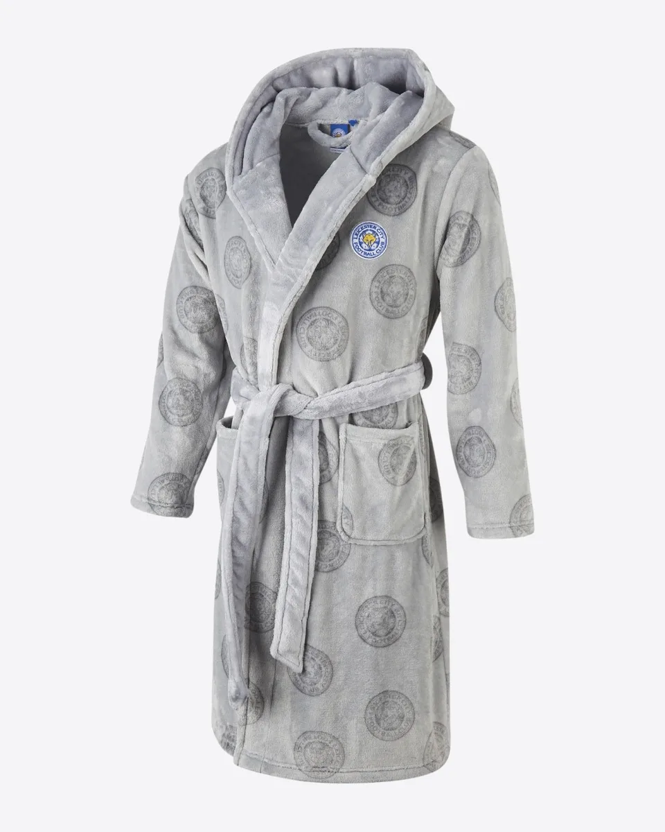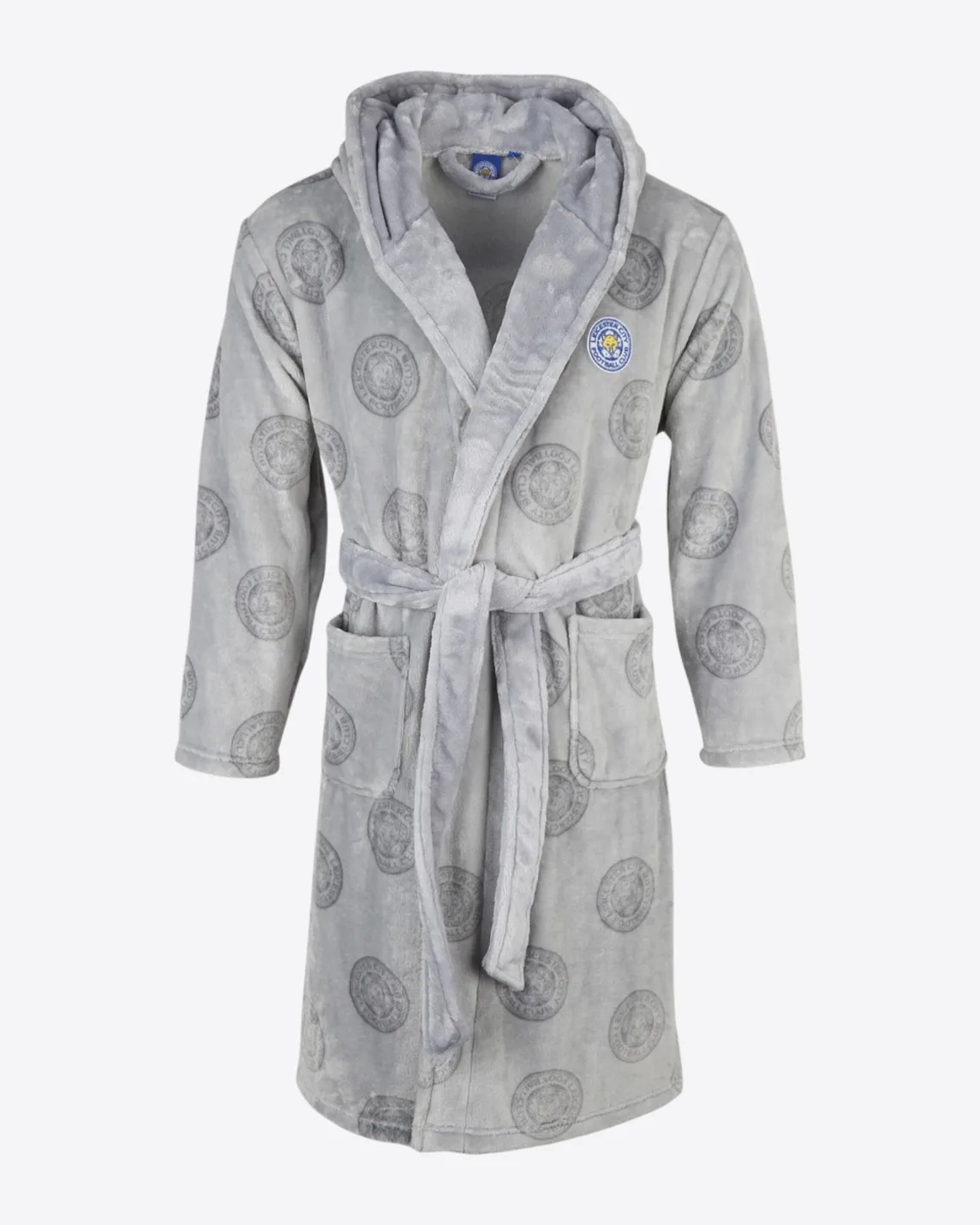 Featuring a contrasting repeat crest design, our grey Leicester City print dressing gown will keep you cosy during those colder nights. Complete with pockets.