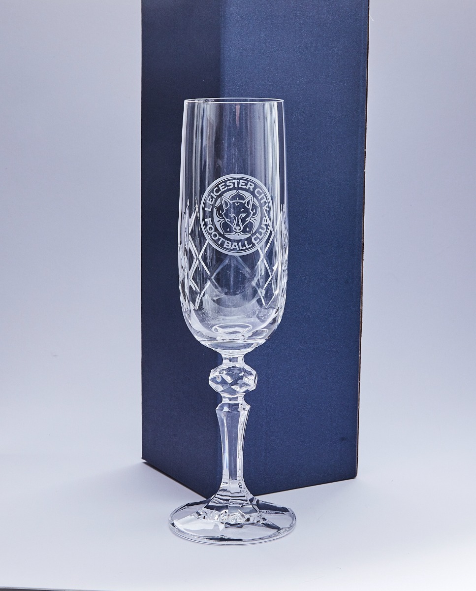 The classic shape of our Leicester City Crystal Champagne Flute is designed to bring out the flavour of champagne and prosecco. Featuring the club crest and cut glass detailing creates a sophisticated look, ideal for any occasion.