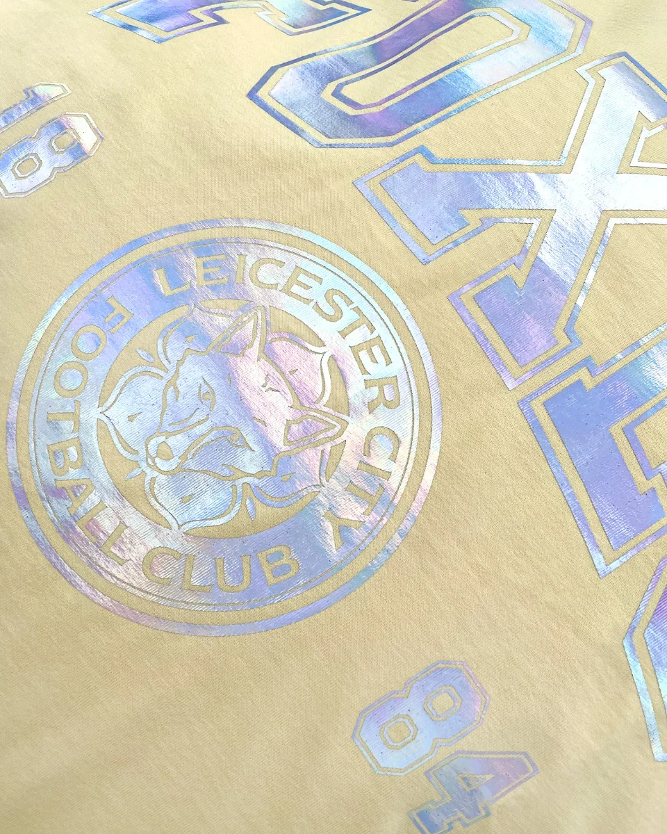 Make a statement in the Leicester City Foxes Varsity Womens T-Shirt, designed with a relaxed fit, featuring a striking holographic foil “FOXES” varsity-style print. The iridescent design catches the light with every move, adding a modern twist to retro varsity vibes.