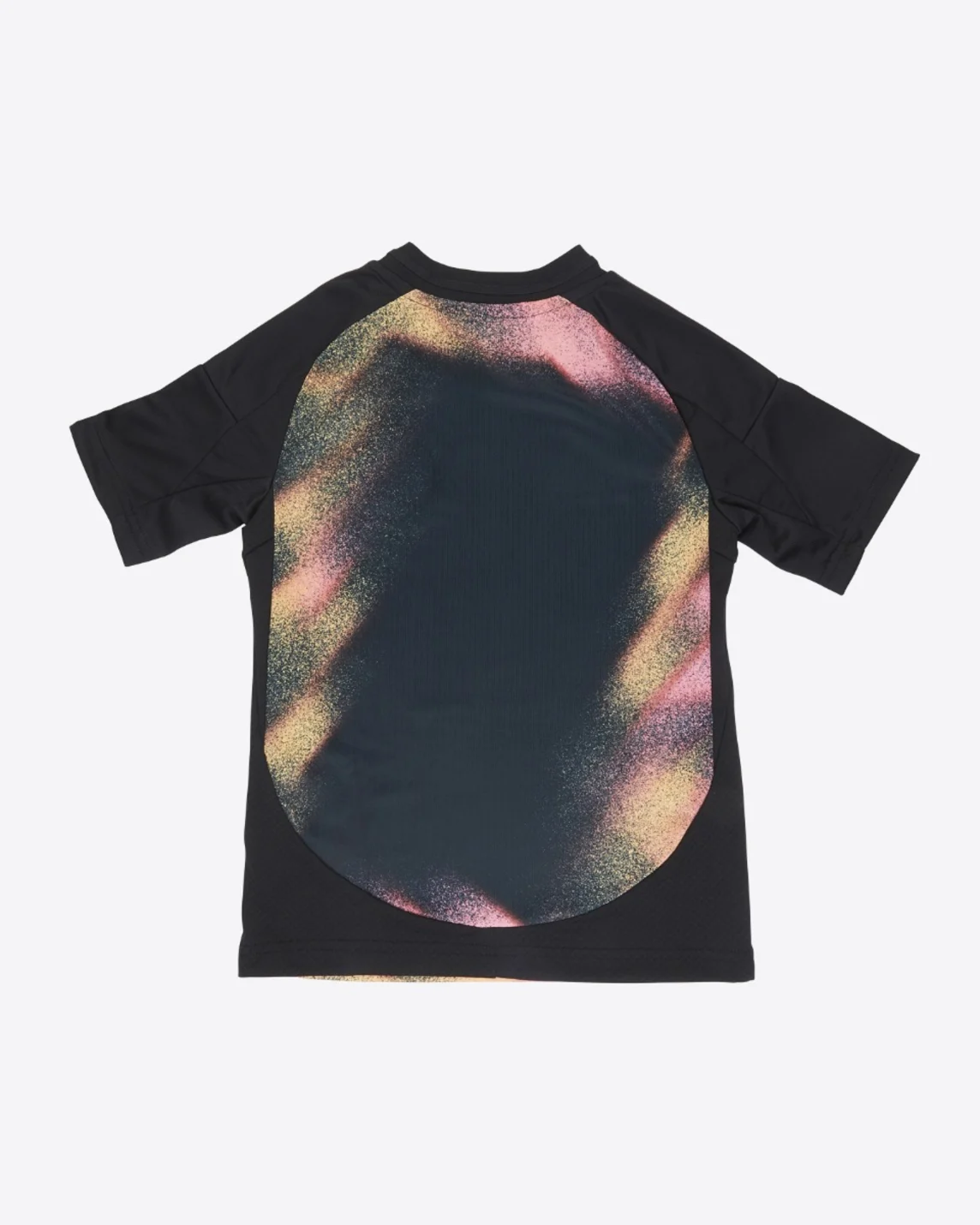 Celebrating the culture and community of our city, the 2024/25 Leicester City adidas Away Shirt is inspired by the street art and murals of Leicester, culminating in a head-turning design for our top-flight return. Featuring a classic crew neck, split striping on adidas’s signature shoulder panels and tonal LCFC crest, the new away shirt will appeal to the bold and the brave as it pops on the terraces and imposes on the grass. A beam orange and acid red spray silhouettes the shirt’s key elements, with adidas moisture-managing fabric integrated as standard.