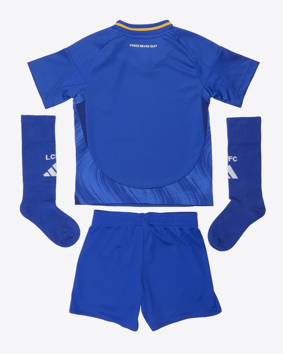 จิ้งจอกไม่เคยยอมแพ้ – คติประจำใจสำหรับชุดทีมเหย้า อดิดาส เลสเตอร์ ซิตี้ ประจำปี 2024/25 ของเราที่สะท้อนถึงการกลับมาสู่พรีเมียร์ลีกของสโมสร เซ็ตเด็กเล็กชุดนี้มาพร้อมคอเสื้อสไตล์เฮนลีย์ที่ทันสมัยพร้อมแถบสีทองที่เข้าคู่กับหัวจิ้งจอกที่โด่งดังไปทั่วโลก โดยนำความทันสมัยมาสู่สูตรคลาสสิก ลายพิมพ์ด้านหลังที่ได้รับแรงบันดาลใจจากจิ้งจอก ด้วยรูปร่างที่เป็นเอกลักษณ์ซึ่งช่วยเน้นที่การปรับแต่งเสื้อและยาวไปถึงกางเกงขาสั้น ในขณะที่ผ้าที่ออกแบบตามเทคนิคของแบรนด์อดิดาส ที่ช่วยจัดการความชื้นจะทำให้ลูกน้อยของคุณรู้สึกสบาย