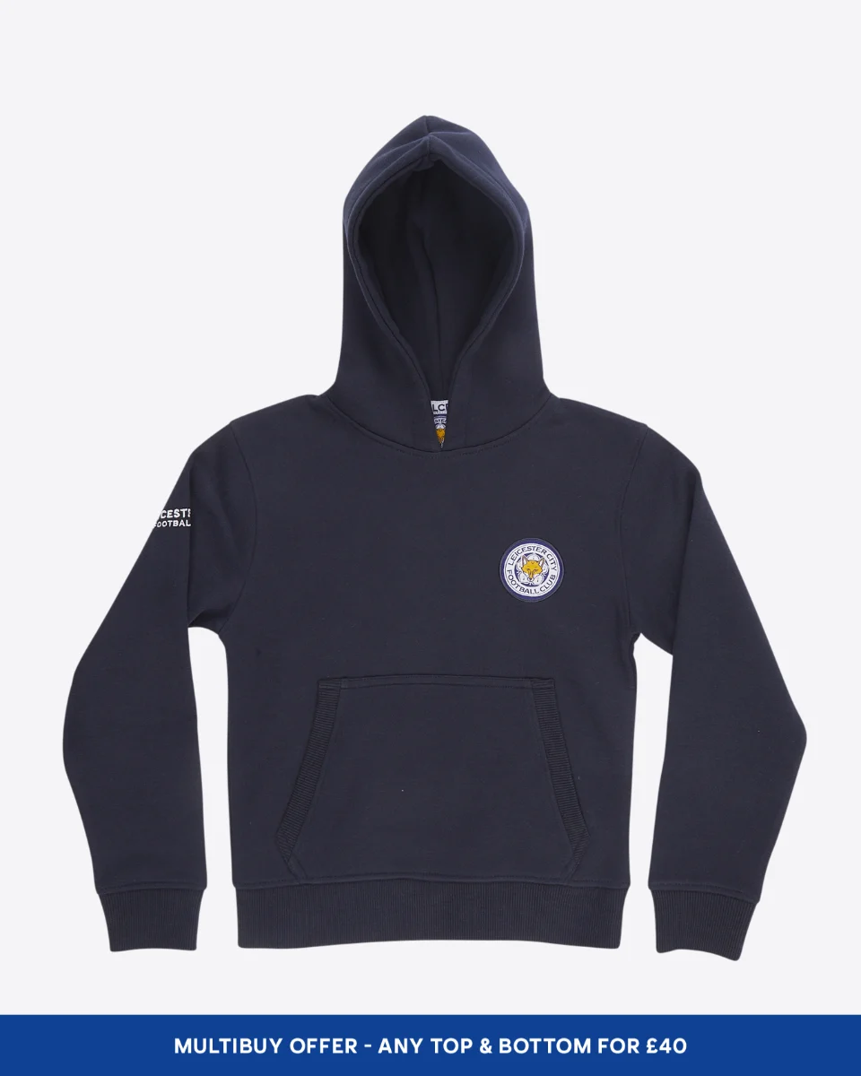 Complete your everyday essential look with our navy crest hoody. Featuring an embroidered club crest and white, stitched detailing on the right sleeve, complete with a kangaroo pocket.