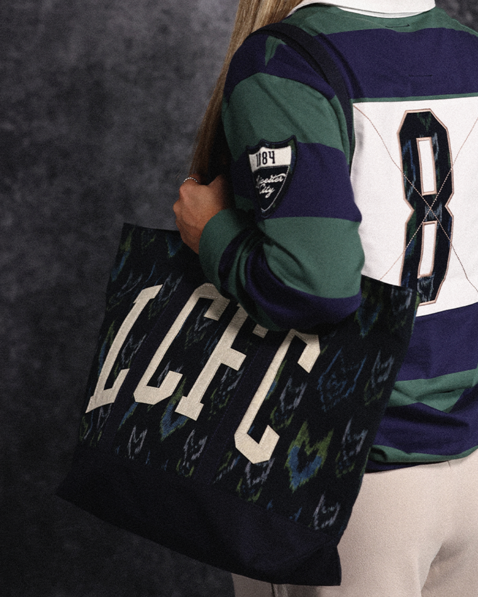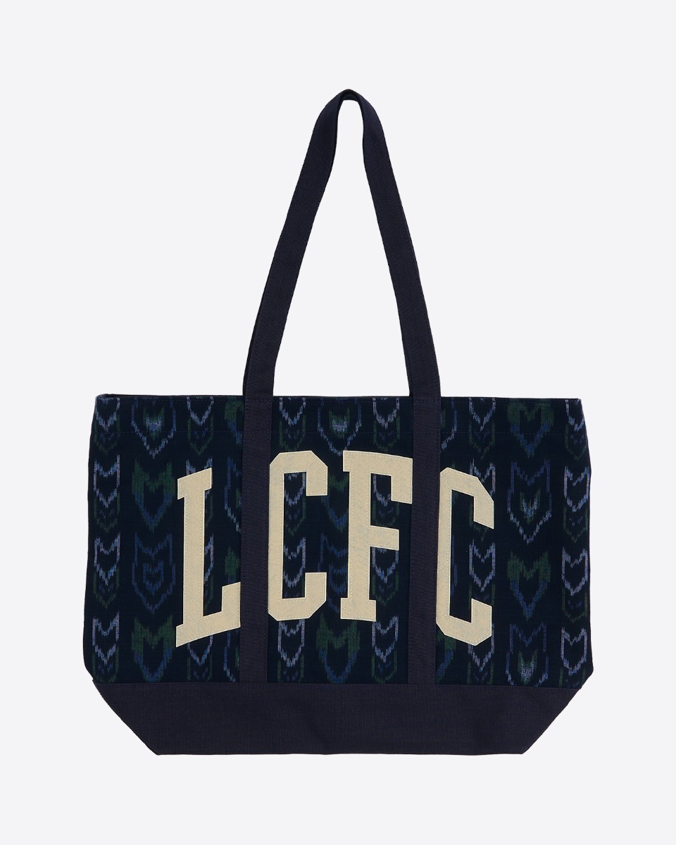 Crafted from pixel-patterned Mud Mee (Ikat) Silk, this navy tote bag offers both elegance and durability for everyday use. The front showcases cream “LCFC” embroidery, creating a simple yet striking look. With spacious capacity and easy-to-carry practicality, it’s ideal for both workdays and casual outings. Blending contemporary style with the charm of Northeastern Thai craftsmanship, this bag reflects LCFC’s identity in a versatile, everyday form.